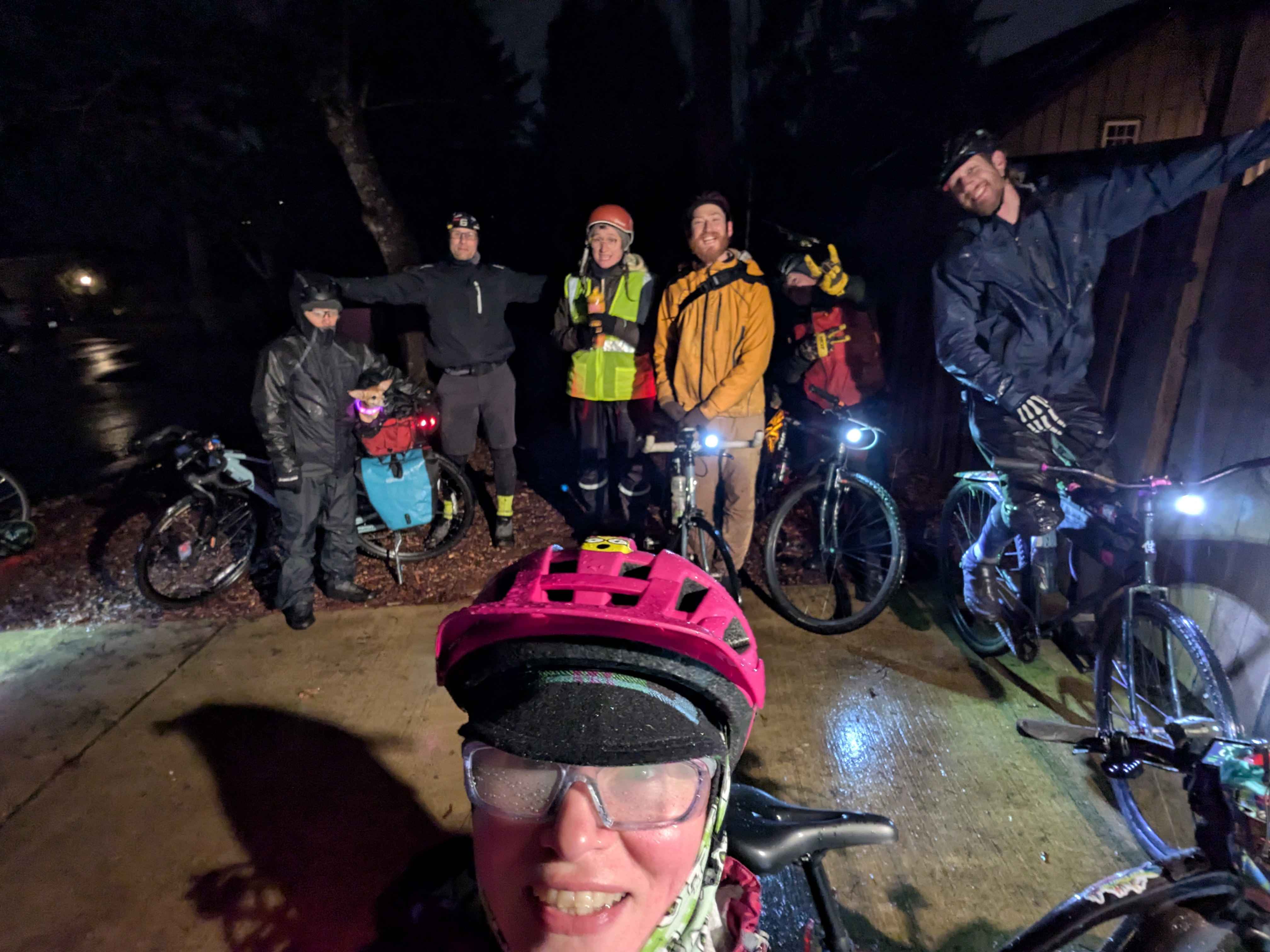 We meet up every other Tuesday. We ride in the Southeast Portland we have food carts and a beer tent at the start of the ride. And we go somewhere and generally have a fire. As a great close-knit ride open to you . i promise to make you dance like idot and celebrate your night.So be kind to all travlers , bring your friends, and optimism.