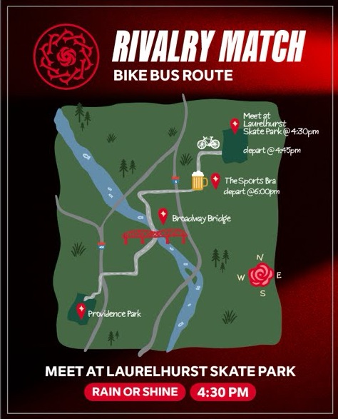 The Thorns' home opener is Friday, March 20, 7 pm at Providence Park. We'll lead a ride from Laurelhurst Park to the field via the Sports Bra. Departing Laurelhurst Park (Skate Park in SE corner) at 4:45 pm to the Sports Bra on NE Broadway for a drink. Departing the Sports Bra at 6:00 to allow plenty of time to get to the game and parked before the ball drops. If there's demand for a return leg after the match, the leaders may be open. Please let us know if this is wanted :) We ride rain or shine! Don't forget a lock and lights for the ride home.