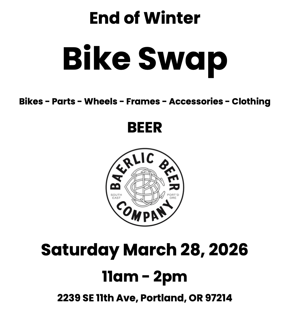 Come and shop at the End of Winter Bike Swap at Baerlic Brewing! Over 40 vendors, free to shop, 11 AM - 2 PM.