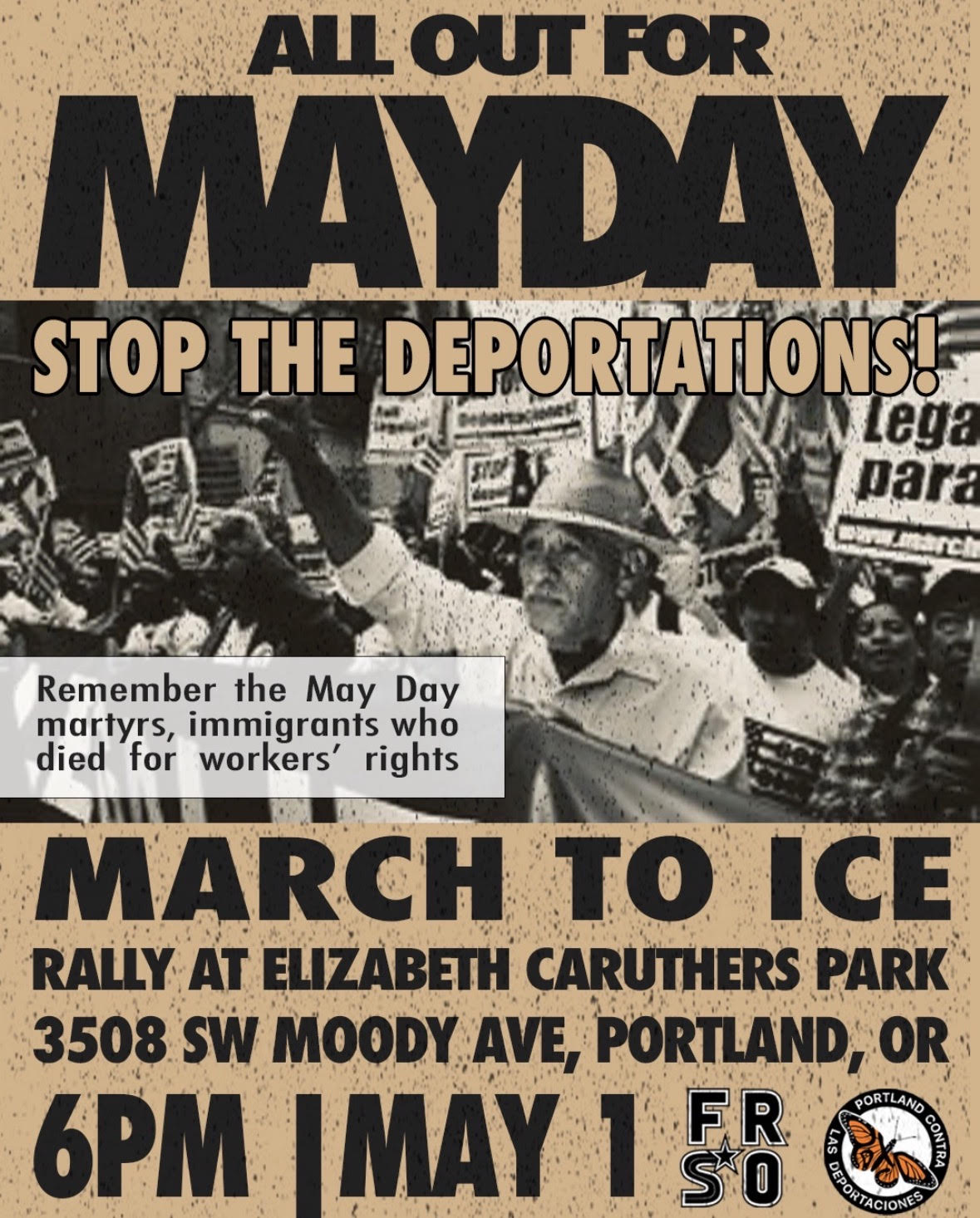 ALL OUT FOR MAYDAY!! Join us to celebrate this workers' holiday with a rally and march to the ICE facility. We remember the May Day martyrs, immigrants who died fighting for workers' rights. ”El pueblo unido jamÔs serÔ vencido!