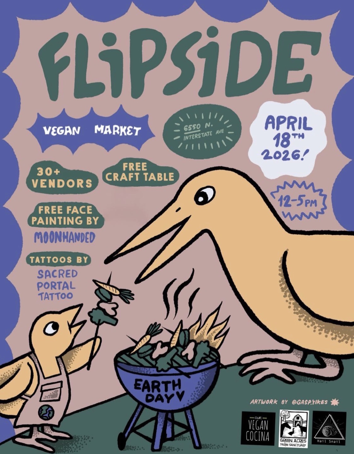 We'll ride about 5 miles together from the Vera Katz statue (just north of the Hawthorne Bridge) on the Eastbank Esplanade to Hail Snail (vegan cinnamon roll shop) for the Flip Side Vegan Market. Bring $ for vendors! The market is 12pm-5pm. There’s a MAX stop across the street from the market. The Flip Side Vegan Market IG: https://www.instagram.com/theflipsidepdx/?hl=en FB: https://www.facebook.com/profile.php?id=61550761540759